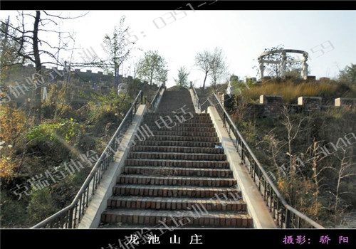 龙池山庄龙池旅游度假村位于阳曲县侯村乡桥沟村,龙池旅游度假村总占地面积千余亩。南临大运公路,北临原太高速公路,距省会太原市15公里,交通便利。龙池山庄是一处集旅游观光、休闲度假、瓜果采摘、农餐民娱为一体的休闲度假村,它以当地“龙”文化传说为主体背景,集田园风光、黄土龙泉、自然生态为一体,“天下******砚”、“天下******剑”、“天下******笔”汇集于此。整个景区以龙泉五池为中心,围绕龙池建有山庄入口清式牌楼、观砚楼、龙泉寺、童乐苑、采摘园、垂钓园、湖心亭、见龙桥、枣林别墅、山村农舍、西湖白楼、石林飞瀑、多功能厅、晨练广场、池畔音乐厅、民俗文化中心等其它配套服务设施。在这里游人可以观光旅游、休闲娱乐、商务洽谈、怡养身心。